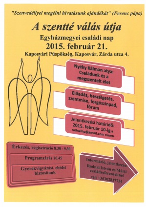 Február 21-én, szombaton A szentté válás útja címmel kerül megrendezésre a Kaposvári Egyházmegye családi lelkinapja.