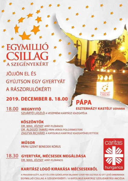 18:30 Dr. Mail József érseki helynök a gyertyákat és mécseseket megáldja, a megáldott mécsesekből a jelenlevők kirakják caritás logót.