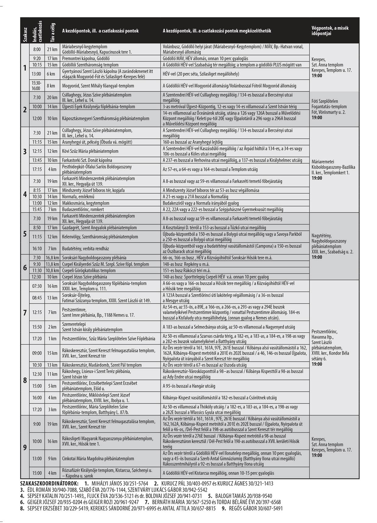 A budapesti Élő rózsafüzér zarándoklat kilenc egyidejű gyalogos zarándoklatból áll, érintve városszéli plébániákat, kegyhelyeket, természeti és kulturális értékeket. Egy-egy szakasz körülbelül húsz kilométer hosszú.