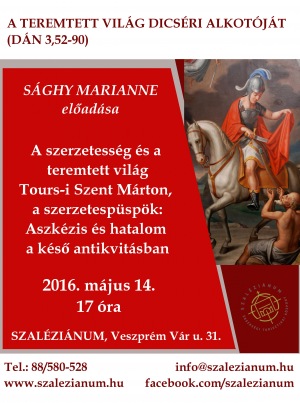 Sághy Marianne történész Tours-i Szent Márton, a szerzetespüspök címmel tart előadást.További információ a Szaléziánum honlapján.