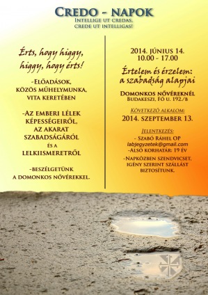 Ezekre a kérdésekre keressük a választ a 2014. június 14-én, szombaton megrendezésre kerülő Credo-Napok sorozat következő alkalmán, melyre minden érdeklődőt szeretettel várnak a Domonkos Nővérek.