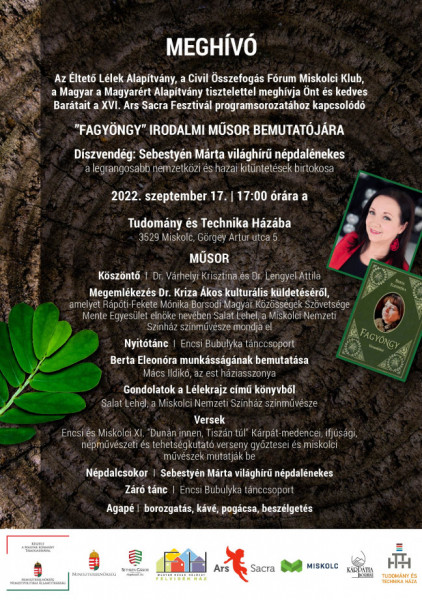 Az esemény a XVI: Ars Sacra Fesztivál programsorozatához kapcsolódik.