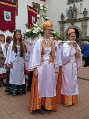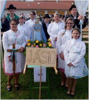 – utána körmenet, Gyöngyösi Úrangyala, majd csoportkép készítése a népviseletes máriás fiatalokról a ferences kolostor belső udvarán (quadrumban)