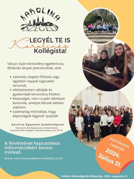 Várják olyan egyetemista lányok jelentkezését, akik családias közösség tagjai szeretnének lenni, fontos számukra a hitük gyakorlása és megélése, és szívesen részt vennének közösségi és lelki programokon is.