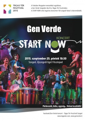 Munkájuk gyümölcsét a koncerten láthatjuk, ahol a fiatalok a Gen Verdével együtt színpadra állnak. A Start Now lehetőséget kínál a résztvevőknek, hogy felfedezzék a művészetet mint egyetemes nyelvezetet, mely áthatol minden akadályon és képes megosztani a többi emberrel olyan értékeket, amelyek a mindennapi életében is irányt mutathatnak.