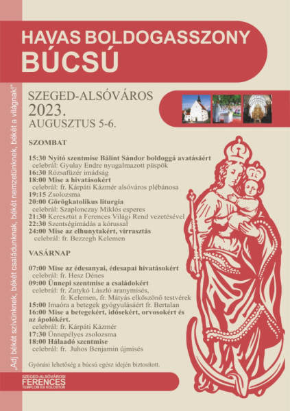 A búcsú teljes idején lesz lehetőség szentgyónásra.