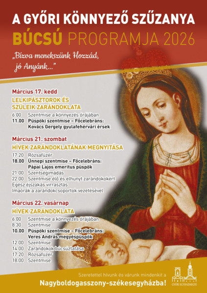2026. március 17., kedd - Lelkipásztorok és szüleik zarándoklata