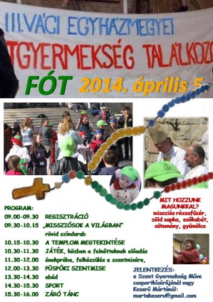A Váci Egyházmegyében működő missziós gyermekcsoportok, a Szent Gyermekség Műve kis missziósainak harmadik találkozóját tartják április 5-én Fóton.