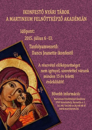 A Martineum Felnőttképző Akadémia Dancs Jeanett ikonfestő vezetésével nyolcvan órás ikonfestő tábort szervez július 6. és 13. között.