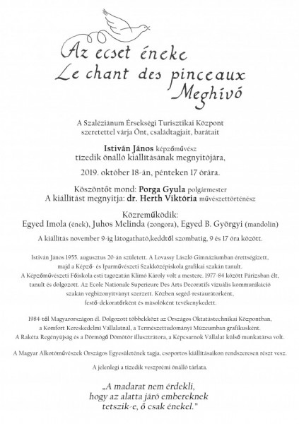 A kiállítás 2019. november 9-ig 09:00 és 17:00 óra között látogatható keddtől szombatig.