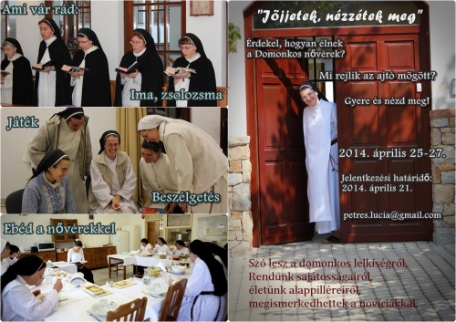 Április 25. és 27. között minden, a szerzetesség, domonkos karizma iránt érdeklődő 19–34 év közötti lányt várnak hivatásgondozó programunkra a Domonkos Nővérek Budakeszin.