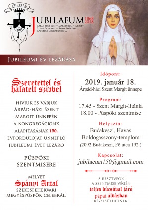 Időpont: 2019. január 18., péntek, Árpád-házi Szent Margit ünnepe 17:45-19:30 óra között
