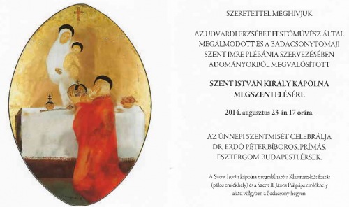 Az Udvardi Erzsébet festőművész által megálmodott és a badacsonytomaji Szent Imre plébánia által adományokból megvalósított Szent István király-kápolna szentelésére augusztus 23-án, szombaton 17 órakor kerül sor a Klastrom-kút forrás (pálos emlékhely) és a Szent II. János Pál pápa emlékhely alatti völgyben a Badacsony-hegyen.