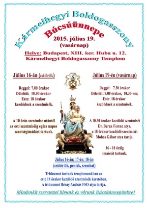 Kármelhegyi Boldogasszony búcsúünnepe a budapesti kármelita templomban