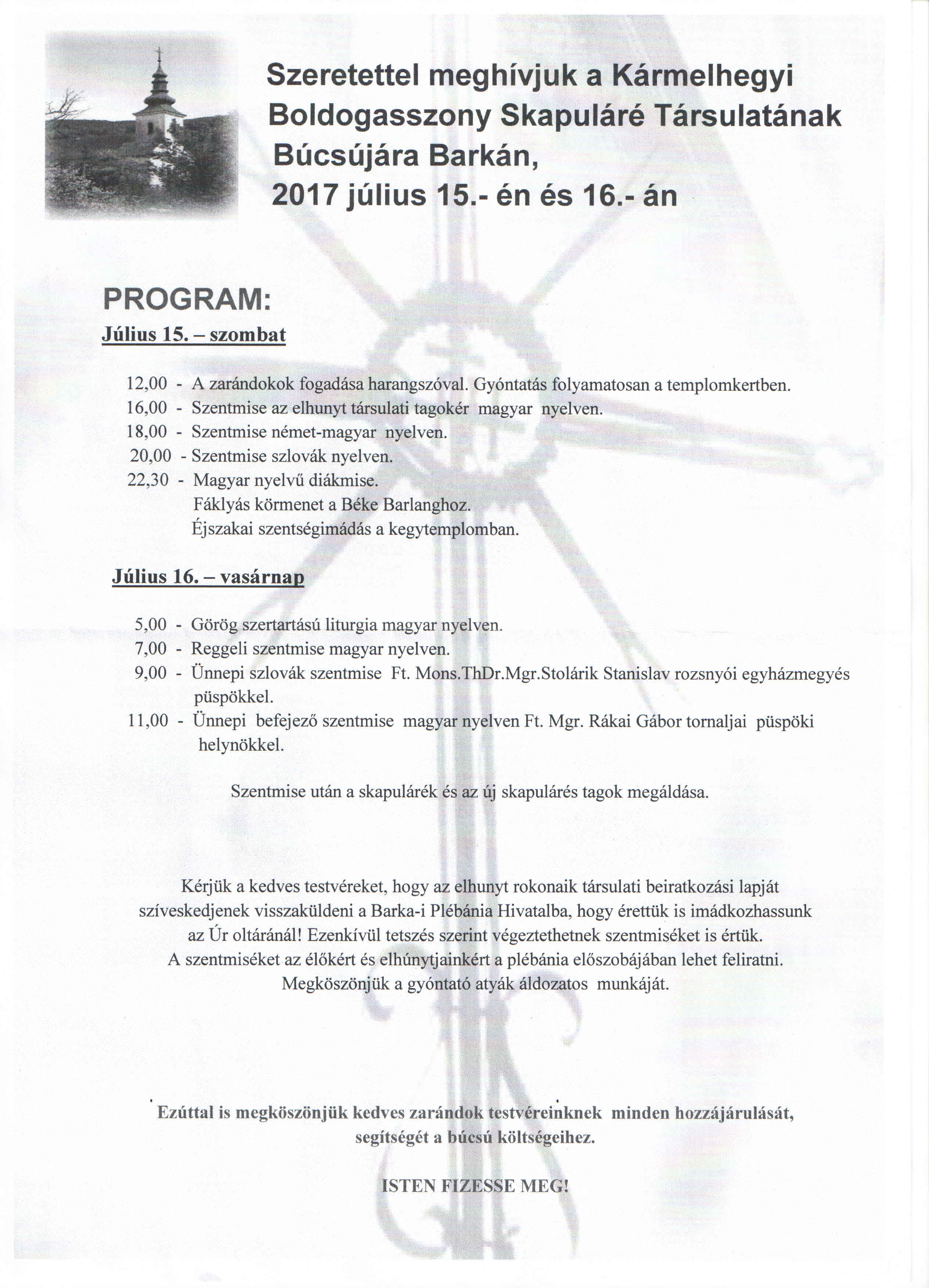 A búcsú meghívója és bővebb információ a mellékletben elhelyezett csatolmányban érhető el.
