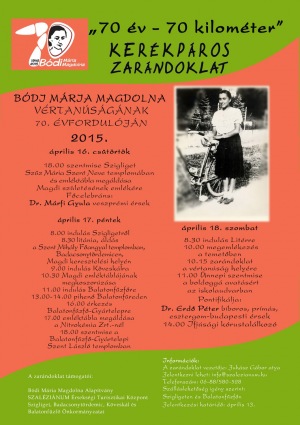 70 év – 70 kilométer címmel kerékpáros zarándoklatra várja az érdeklődőket a Szaléziánum Bódi Mária Magdolna vértanúságának 70. évfordulóján április 16. és 18. között.