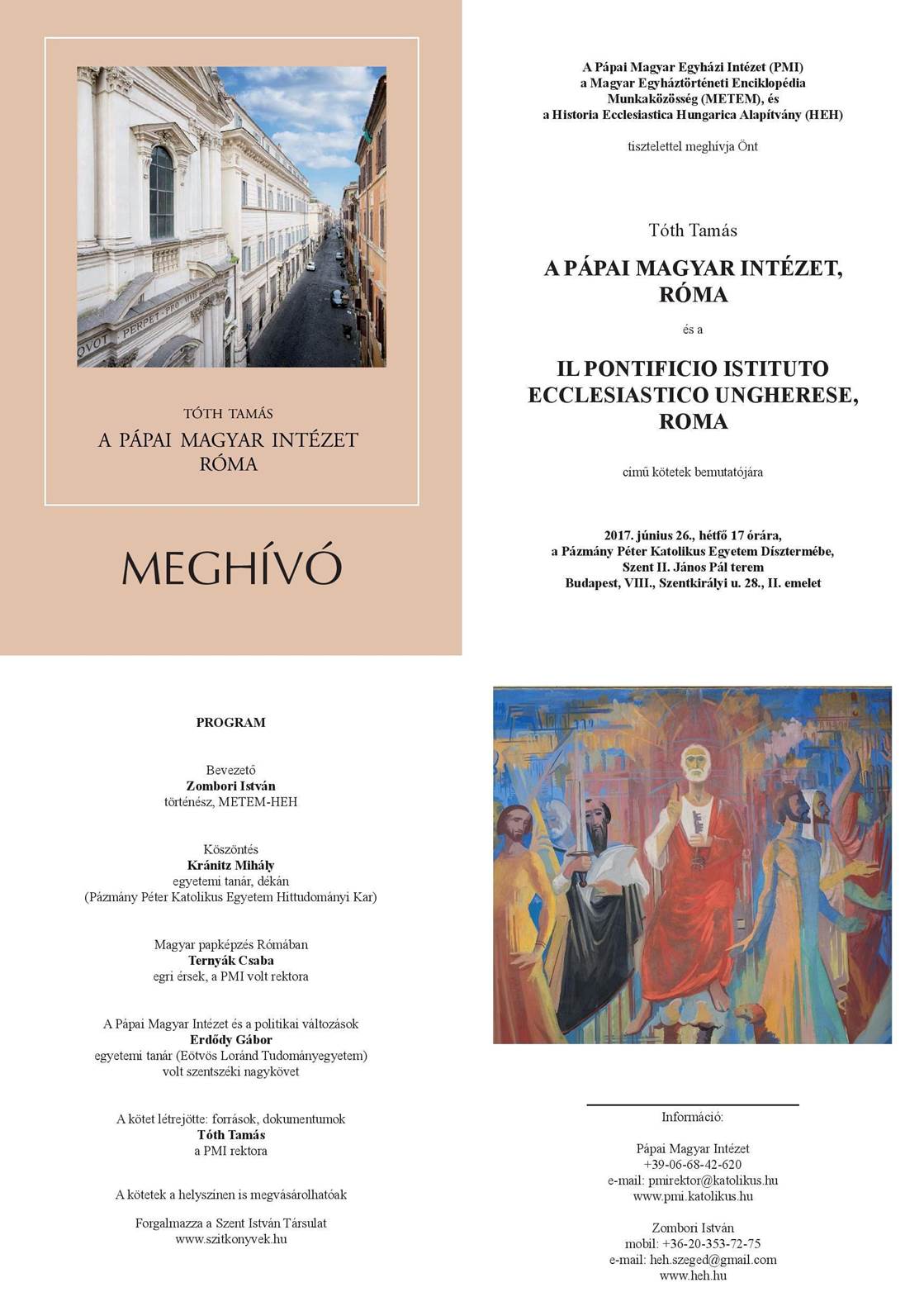 Program: Tóth Tamás: A Pápai Magyar Intézet, Róma és a