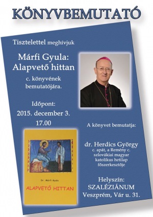 A Szaléziánum Érsekségi Turisztikai Központban mutatják be Márfi Gyula: Alapvető hittan című könyvét.