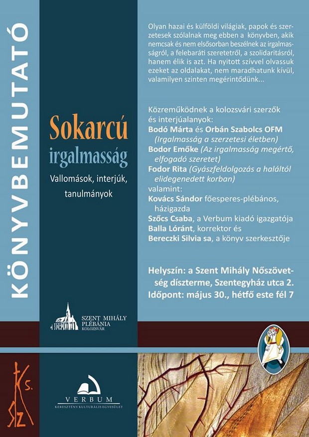 Program: A katolikus egyházban zajló irgalmasság éve alkalmából jelentetett meg egy sokműfajú kötetet kiadónk, amelyben az irgalmas szeretet gyakorlati példáit villantja fel a hazai élettérből "Sokarcú irgalmasság" címmel, vallomások, interjúk, tanulmányok.