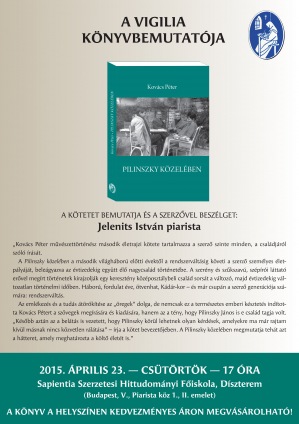 A Vigilia Kiadó hívja és várja az érdeklődőket Kovács Péter: Pilinszky közelében című könyvének bemutatójára április 23-án, csütörtökön 17 órakor a Sapientia Szerzetesi Hittudományi Főiskola dísztermébe (1052 Budapest, Piarista köz 1., II. emelet).