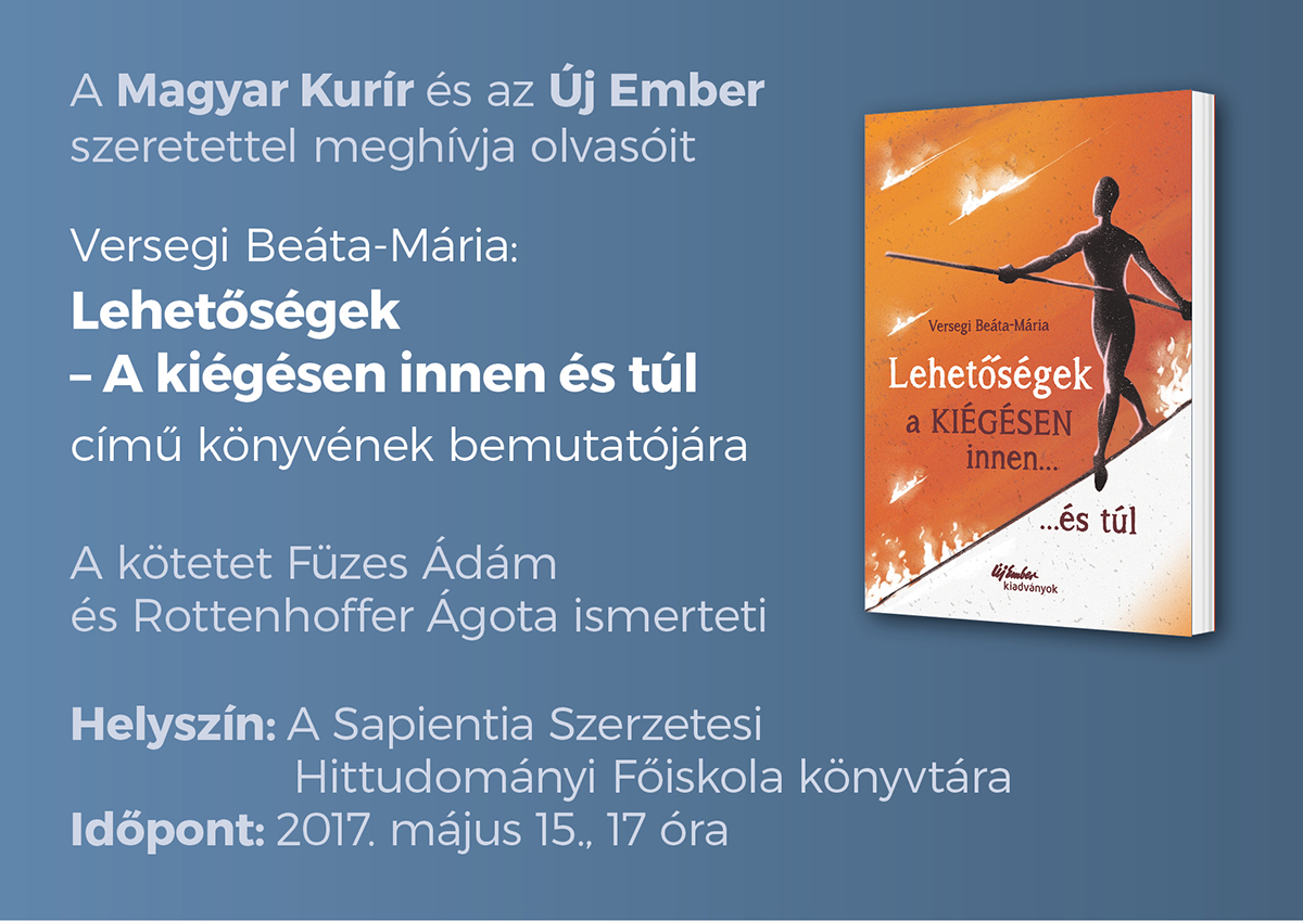 Program: Versegi Beáta - Mária: Lehetőségek - A kiégés ellen és túl című könyvének bemutatója