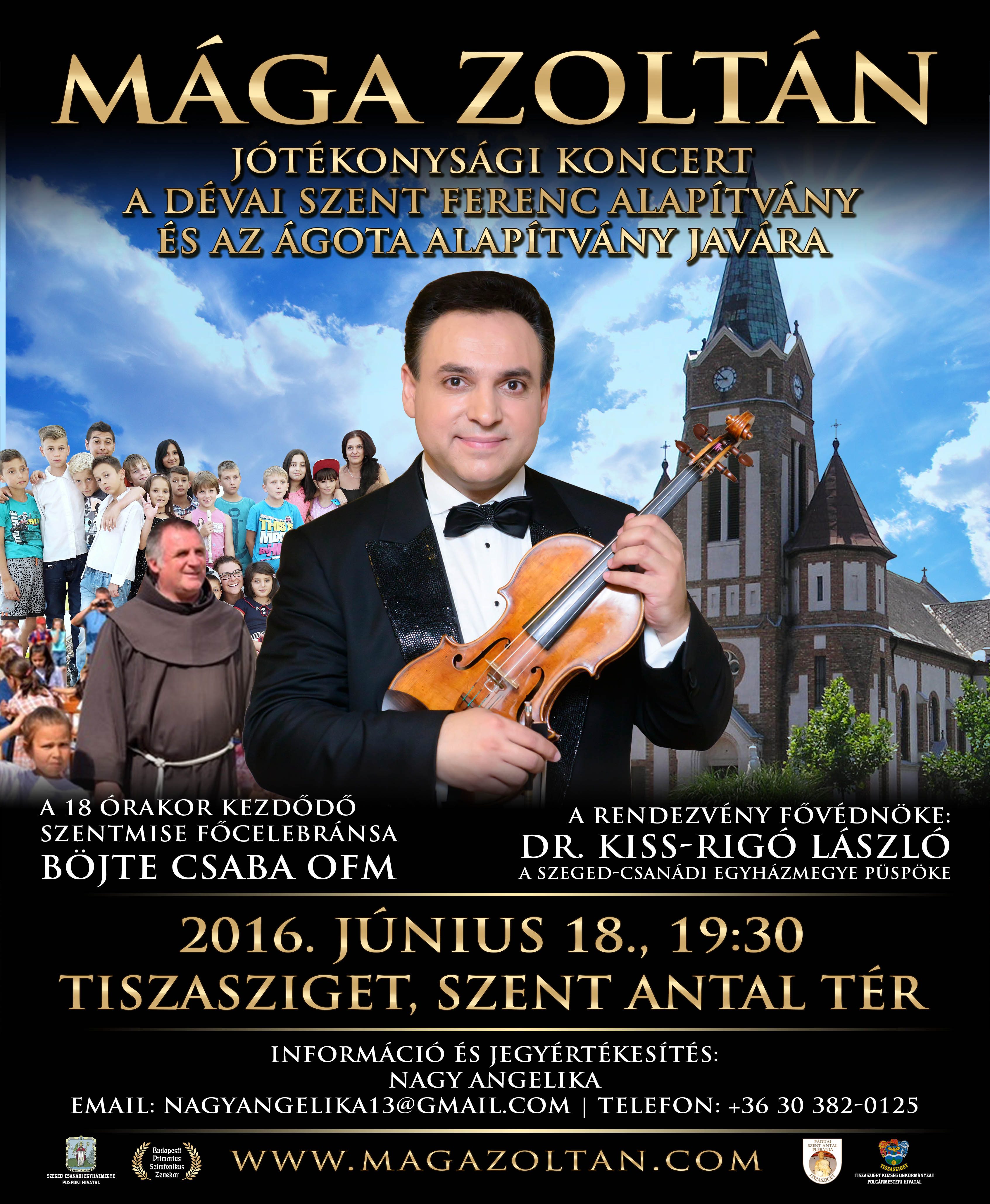 Program: A rendezvény előtt, 18.00 órától szabadtéri szentmisét mutat be a résztvevő papsággal Böjte Csaba OFM, és Fazakas Gusztáv Tiszasziget lelkipásztora.