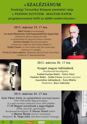 17:00 Nyugati magyar rádióadások (kerekasztal-beszélgetés): Szabad Európa Rádió – Szőcs Géza; Vatikáni Rádió – Szabó Ferenc SJ; Ausztráliai rádióadások – Soós Miklós. Moderátor: Rácz Gabriella