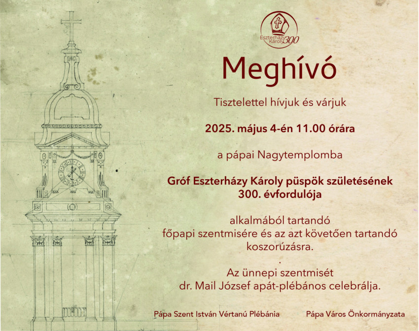 Gróf Eszterházy Károly püspök születésének 300. évfordulója alkalmából tartandó főpapi