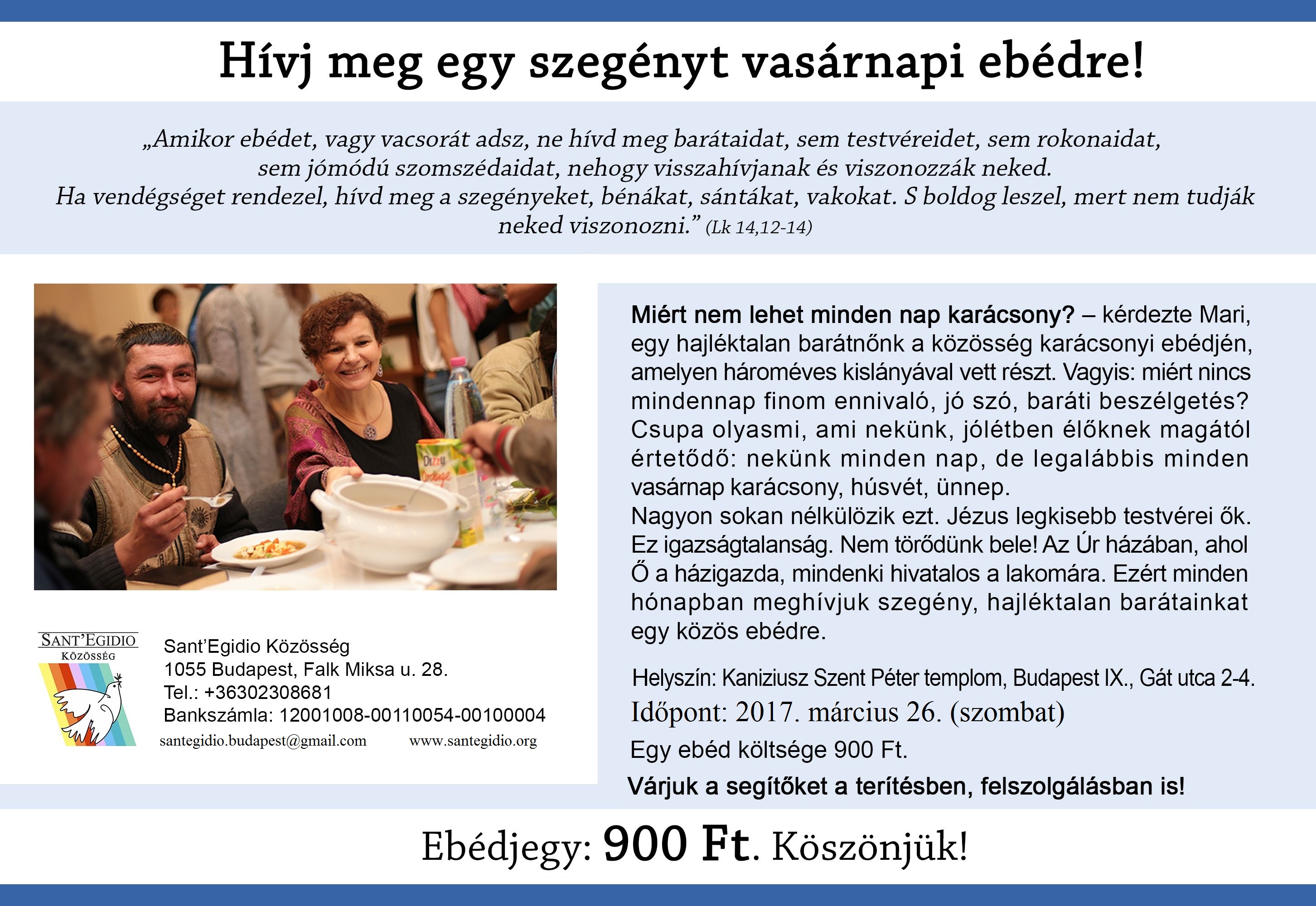 Mottó: "Hívj meg egy szegényt vasárnapi ebédre!"