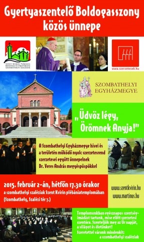 Gyertyaszentelő Boldogasszony ünnepe egyben a megszentelt élet, azaz a szerzetesség világnapja. A Ferenc pápa által meghirdetett szerzetesek évében február 2-án, hétfőn 17.30-kor Dr. Veres András megyéspüspök a szaléziak templomában együtt ünnepel az egyházmegye területén működő szerzetesrendek képviselőivel, amelyre szeretettel hívják a híveket is. Ugyanitt reggel fél 8-tól egésznapos szentségimádást tartanak a Segítő Szűz-kápolnában papi és szerzetesi hivatásokért.