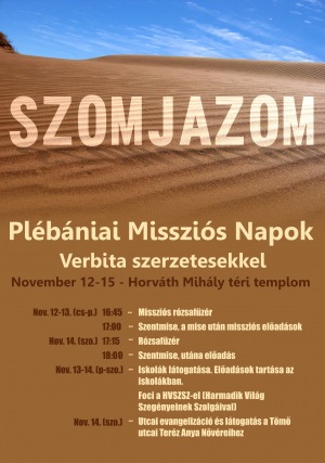 Plébániai missziós napokat tartanak november 12-15-ig Szomjazom címmel Budapesten, a Horváth Mihály téri templomban, a józsefvárosi Szent József Plébánián.