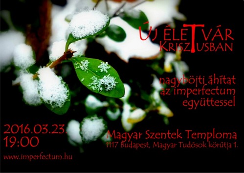 Nagyböjti áhítatot tartanak az Imperfectum együttessel március 23-án, 19 órától a budapesti Magyar Szentek templomában (1117 Budapest, Magyar Tudósok körútja 1.).
