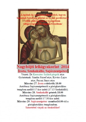 Március 27-én, 28-án és 29-én nagyböjti lelkigyakorlatra várják Irota, Szuhakálló és Sajószentpéter egyházközségek tagjait.