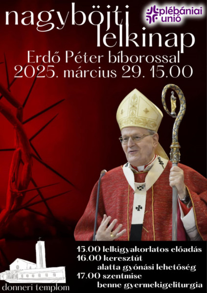 15:00 Erdő Péter bíboros, prímás, esztergom-budapesti érsek lelkigyakorlatos előadása