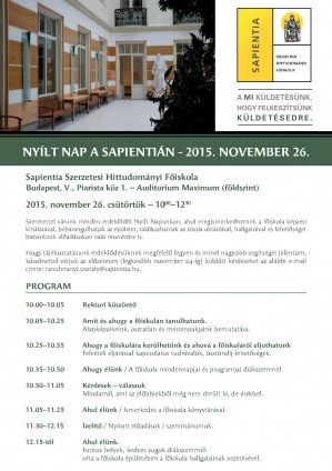 Helyszín: Sapientia Szerzetesi Hittudományi Főiskola – Budapest V., Piarista köz 1. / Auditorium Maximum (földszint)