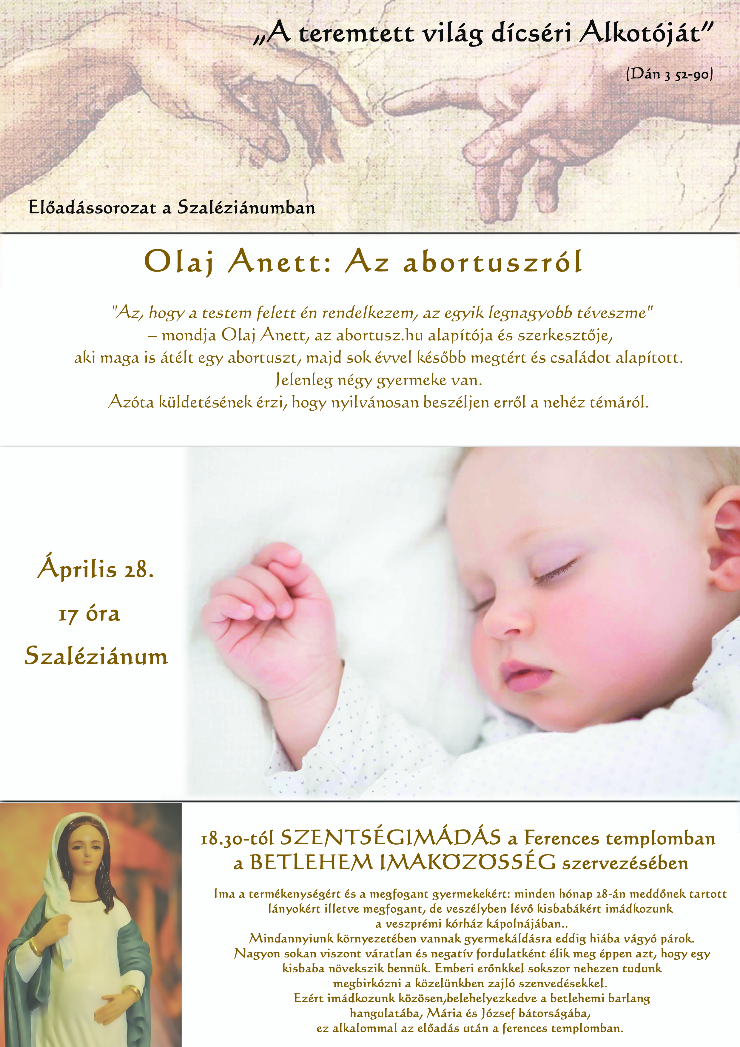 Az előadás után, 18.30-tól szentségimádás kezdődik a ferences templomban Megyesi Ferenc atya vezetésével