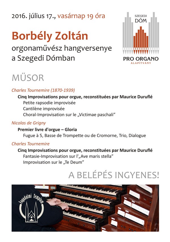Program: Borbély Zoltán orgonaművész hangversenye.