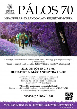Különleges lelki feltöltődésre, kellemes erdei túrára, netán egy igazi erőpróbára vágysz a Pilis szívében? Gyere és vegyél részt idén is a Pálos 70 túráin, immár ötödik alkalommal október 2-án, 3-án és 4-én Budapest és Márianosztra között.