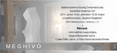 Június 19-én, pénteken 16 órakor a balatonszemesi Bujdosó Magtárba várják az érdeklődőket a Pálosok című kiállítás ünnepélyes megnyitójára.