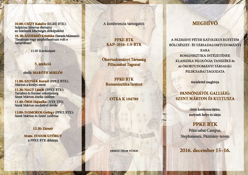 Helyszín: Pázmány Péter Katolikus Egyetem Bölcsészet- és Társadalomtudományi Kar, Piliscsaba, Stephaneum, Pázmány-terem