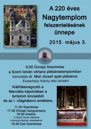 A veszprémi Szaléziánum a 220 éves pápai nagytemplom felszentelésének ünnepére hívja és várja az érdeklődőket.