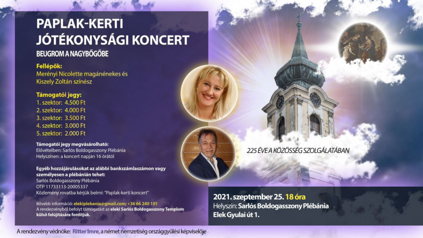 A rendezvényből befolyt támogatást az eleki Sarlós Boldogasszony-templom külső felújítására fordítják.