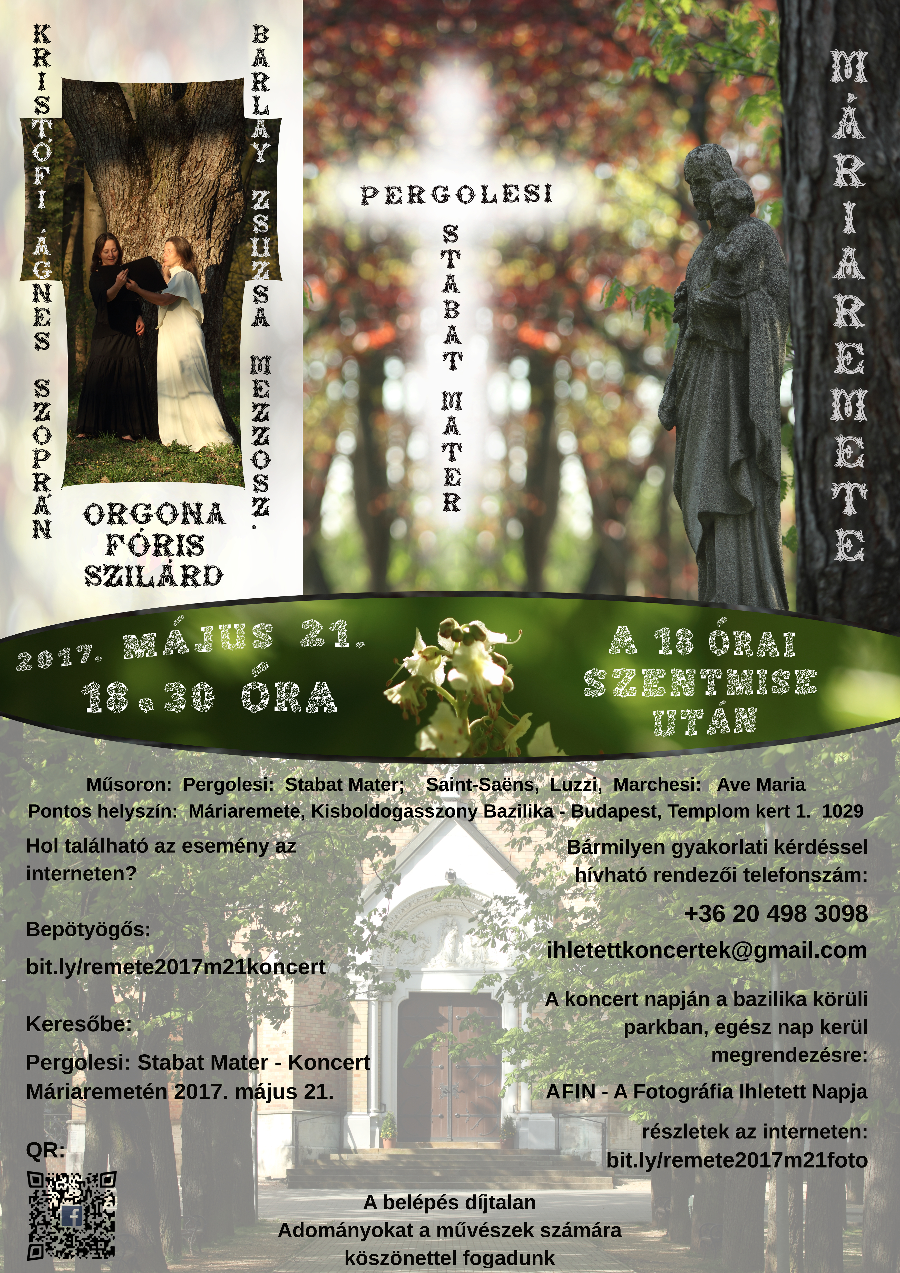 Műsoron: Pergolesi: Stabat Mater című műve Saint-Saëns, Luzzi, Marchesi: Ave Maria Előadja: Kristófi Ágnes - szoprán Barlay Zsuzsa - mezzoszoprán Fóris Szilárd - orgona