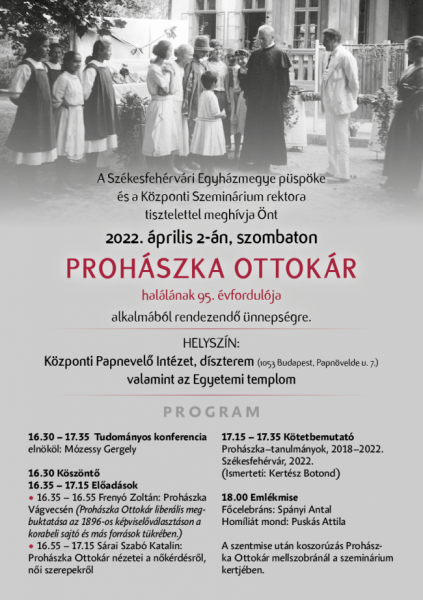 17:15 – 17:35 Kötetbemutató - Prohászka–tanulmányok, 2018–2022. Székesfehérvár, 2022