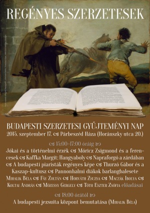 Szeptember 17-én, csütörtökön 15 órakor Regényes szerzetesek címmel rendezi meg a 2015. évi budapesti szerzetesi gyűjteményi napot a Magyar Ferences Könyvtár és Levéltár, a Piarista Rend Magyar Tartománya Központi Könyvtára és Levéltára és a Jézus Társasága Magyarországi Rendtartomány Könyvtára és Levéltára.