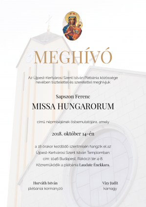Program: Sapszon Ferenc: Missa Hungarorum című népmiséjének ősbemutatója szentmise keretében
