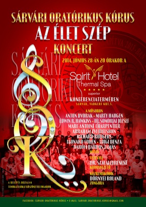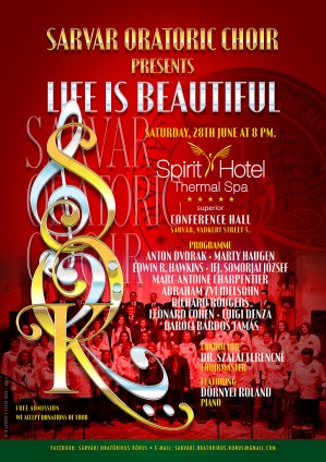 A Sárvári Oratórikus Kórus június 28-án, szombaton 20 órai kezdettel a Spirit Hotel Thermal Spa*****superior konferenciatermében tartja következő, Az élet szép című koncertjét.