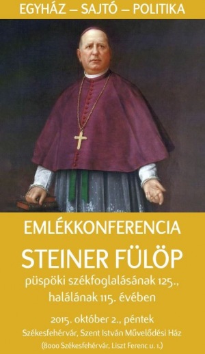 Egyház - sajtó - politika címmel emlékkonferenciát szerveznek Steiner Fülöp püspöki székfoglalásának 125., halálának 115. évében október 2-án, pénteken a székesfehérvári Szent István Művelődési Házban (8000 Székesfehérvár, Liszt Ferenc u. 1.).
