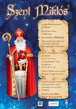 A Kalocsa-Kecskeméti Főegyházmegye Családbizottsága és a SZÉK által működtetett Parázs Központ szervezésében, Kecskemét főterén a Barátok temploma előtti területen 2014. december 4-én 15:00-17:00-ig és december 5-én 15:00-18:00-ig kézművesfoglalkozást tartunk, ahol a kicsik és nagyok találkozhatnak Szent Miklós mai képviselőjével és a Korda Könyvkereskedés ünnepi kínálatát is megismerhetik.