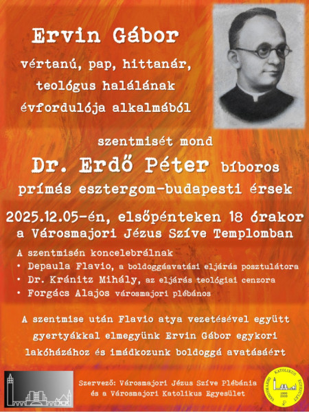 Szentmise Ervin Gábor vértanú, pap, hittanár teológus halálának évfordulója